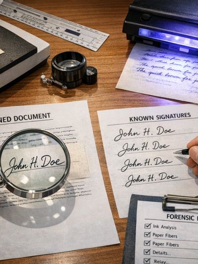 i. Comparison of questioned handwritten content and signature verification with known standard writing in order to get genuineness or authenticity of that particular signature or writing content.